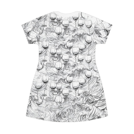 Whimsical Wine Glasses T-Shirt Dress - Perfect for Parties & Casual OutingsRegular price $34.50 USDRegular priceUnit price / per-