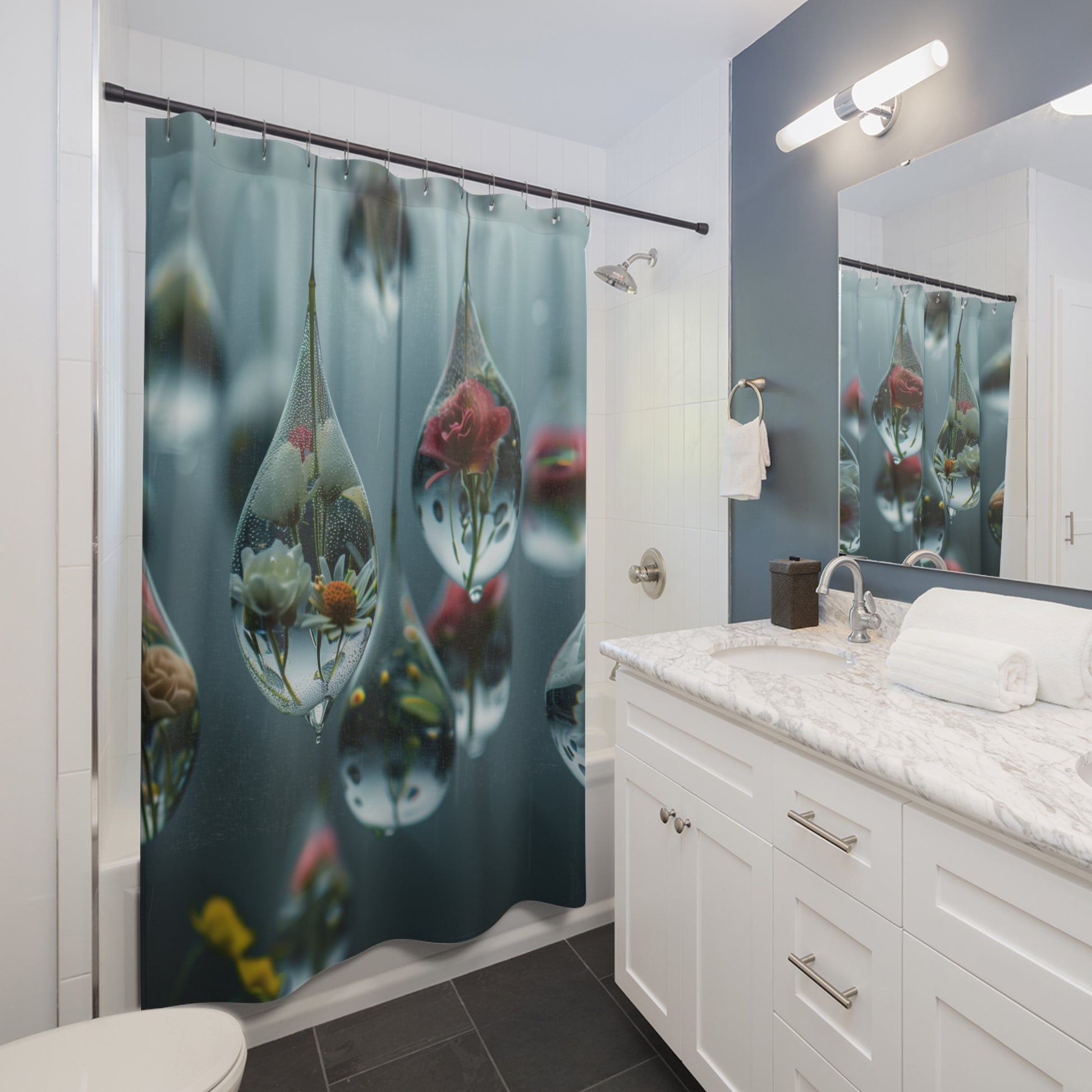 Artistic Shower Curtain Design - Flowers in Waterdrops
