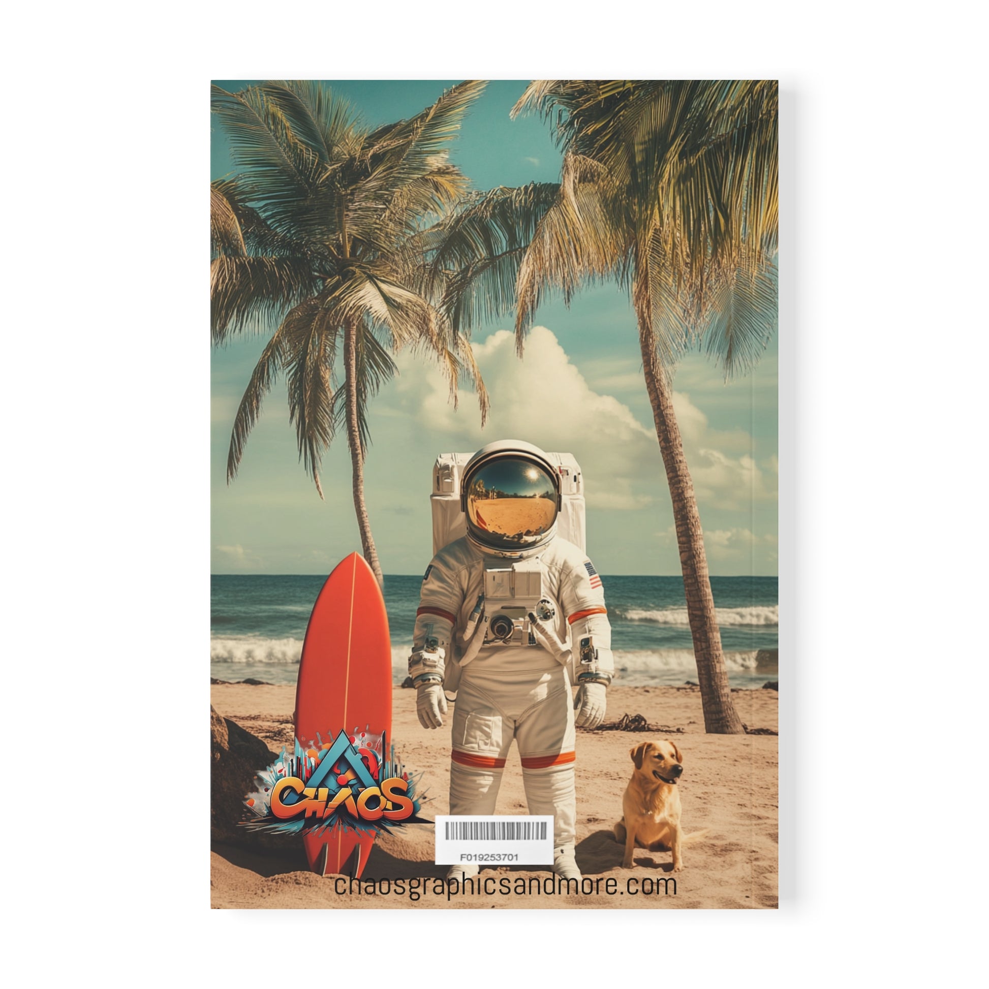 Beach Vibes Softcover Notebook - Astronaut & Dog Design