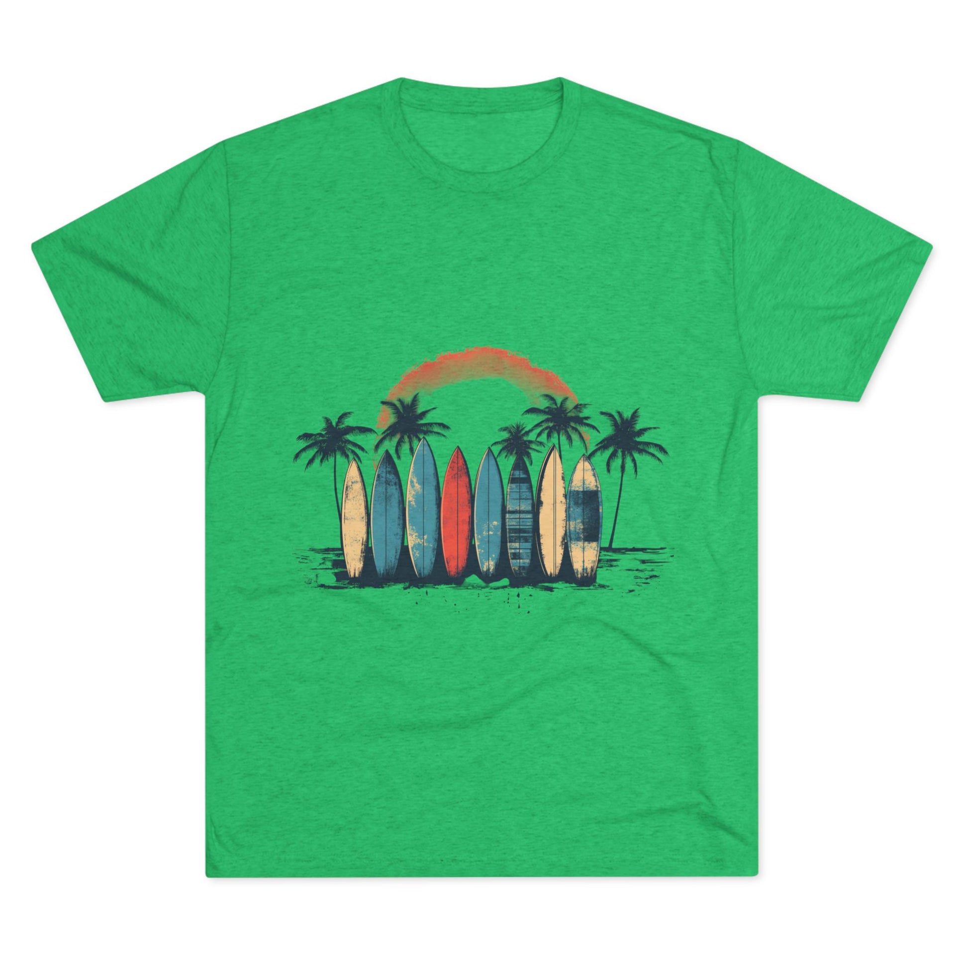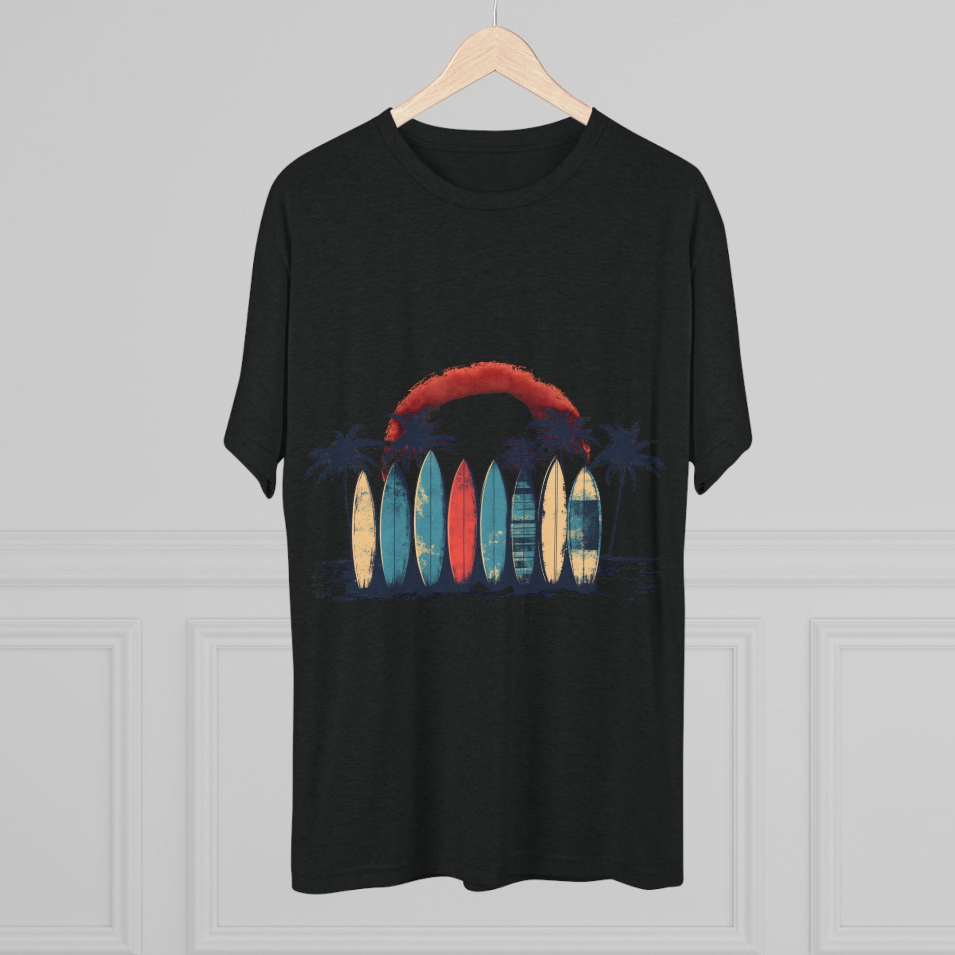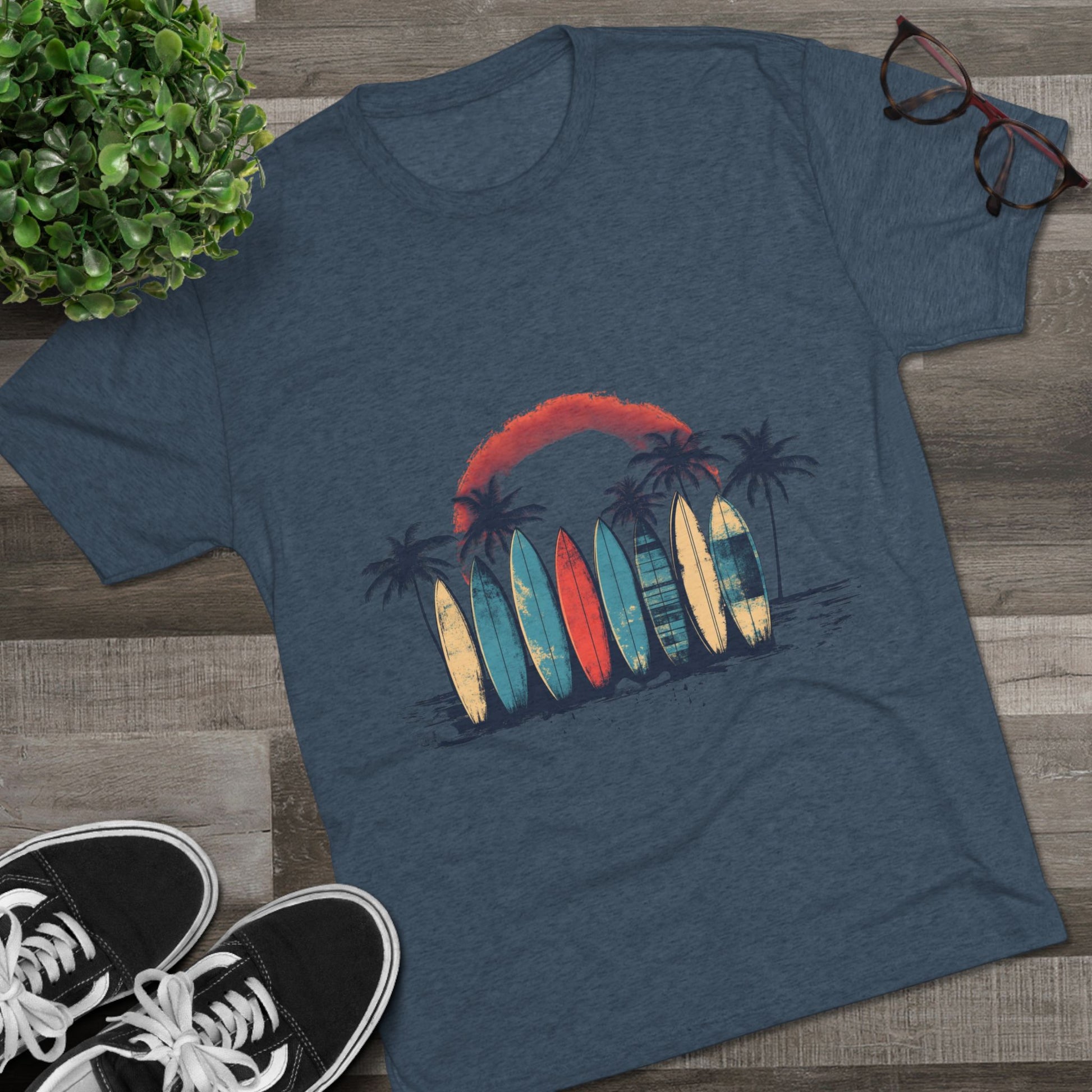 This Tee features a design of surfboards and beach vibes, perfect for those who love the ocean and beach lifestyle. It gives off a relaxed and casual vibe, ideal for everyday wear or a day at the beach. This Tee is relevant for beach lovers, surfers, and those who enjoy summer festivities and vacation vibes.