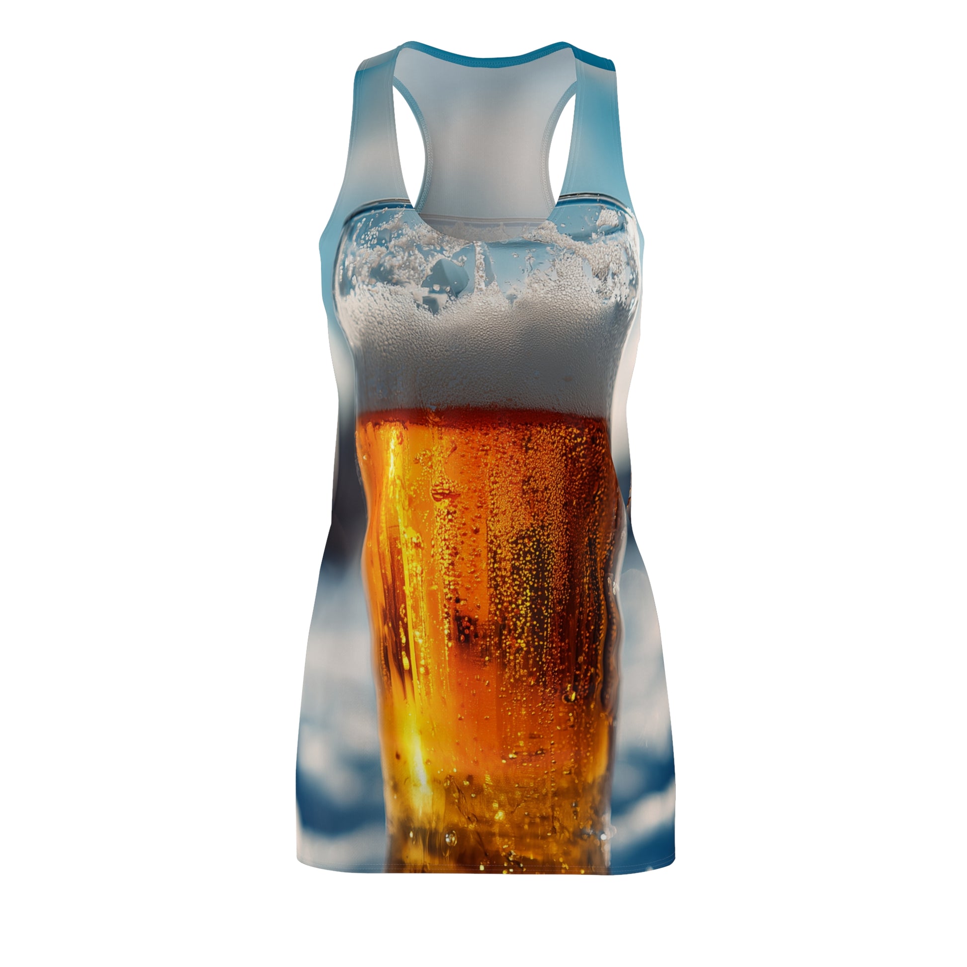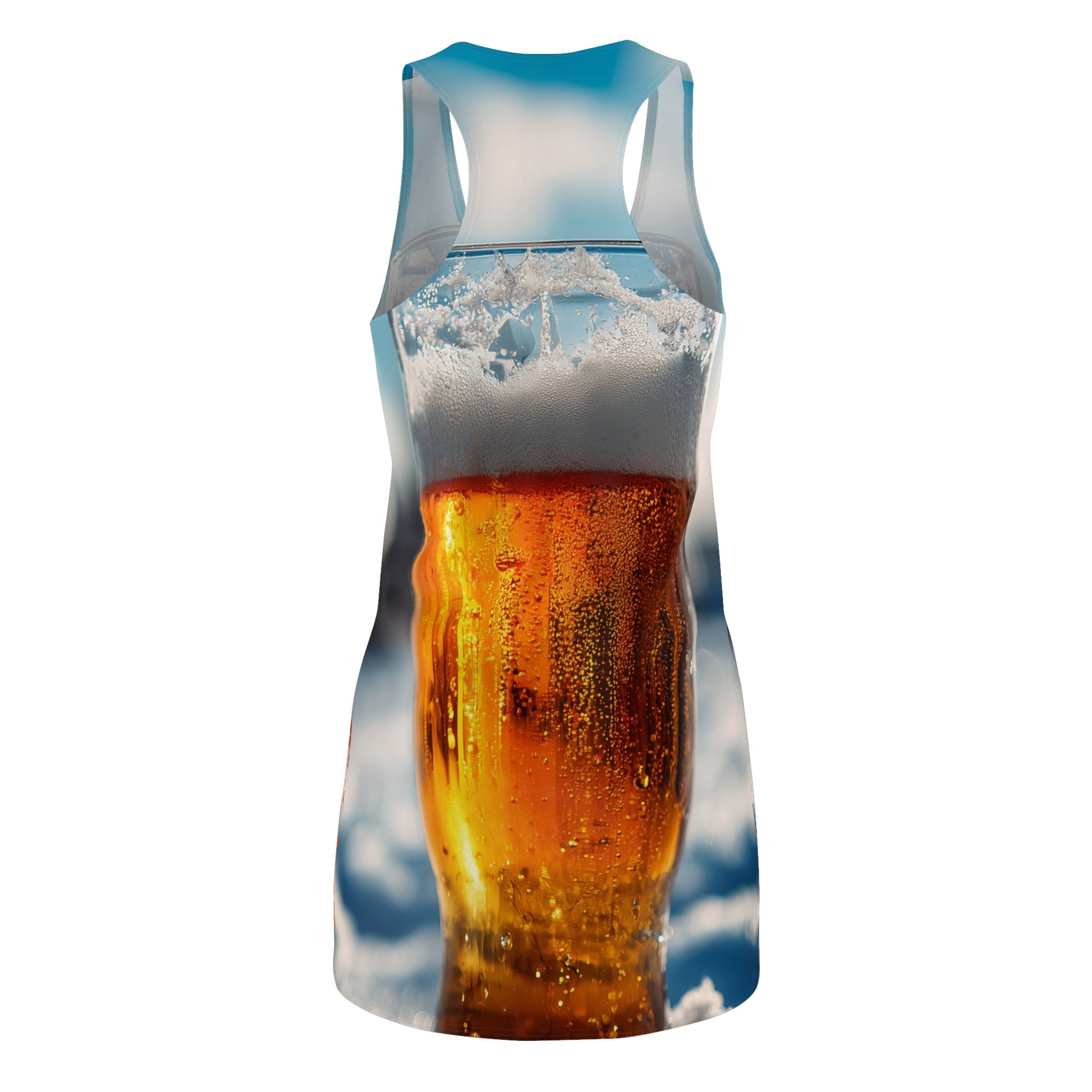 Beer Lover's Racerback Dress v2, Casual Summer Dress, Beer Theme AOP Dress, Eco-Friendly Dress, Outdoor Party Outfit