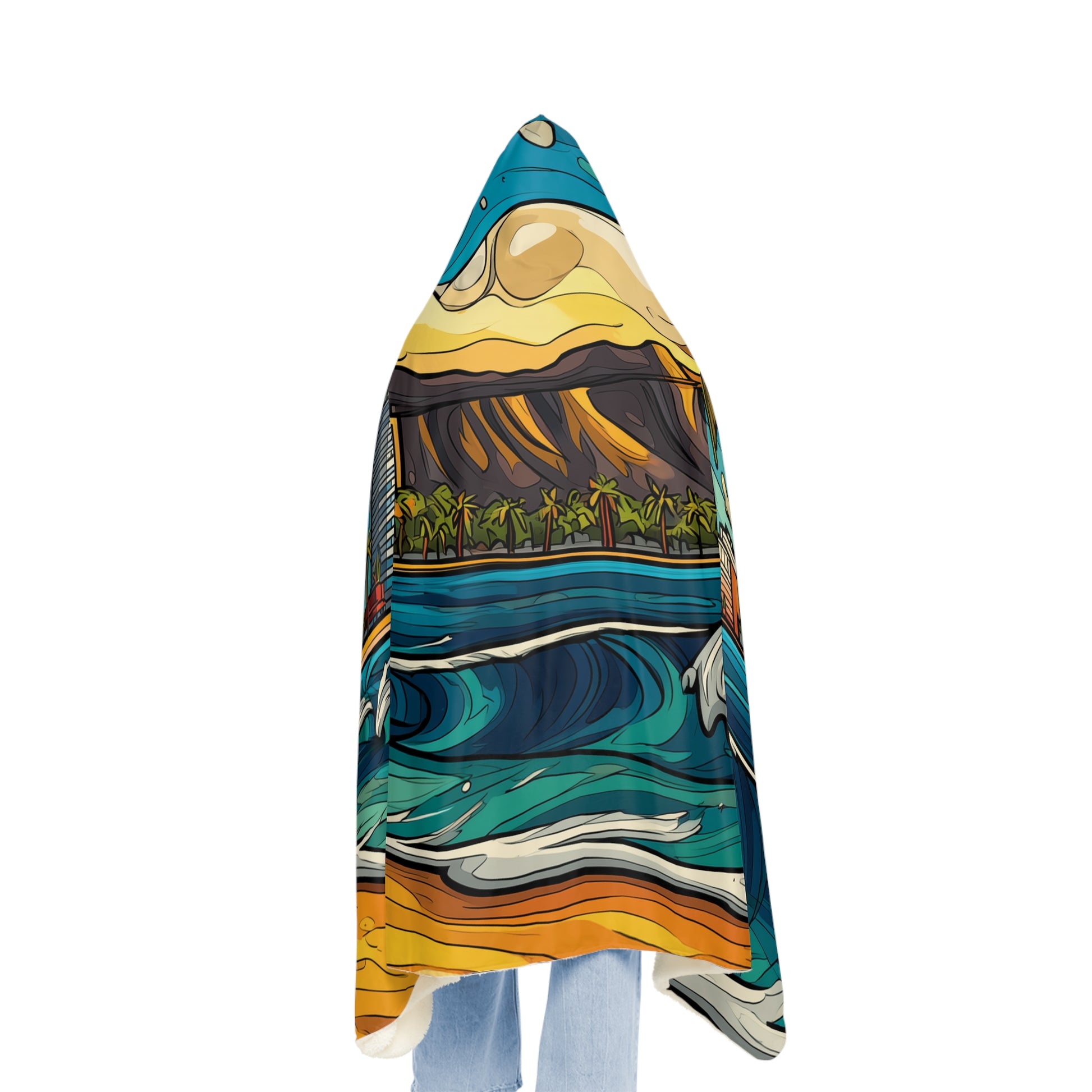 Hooded Beach Wave Snuggle Blanket – Tropical Ocean Sunset Design