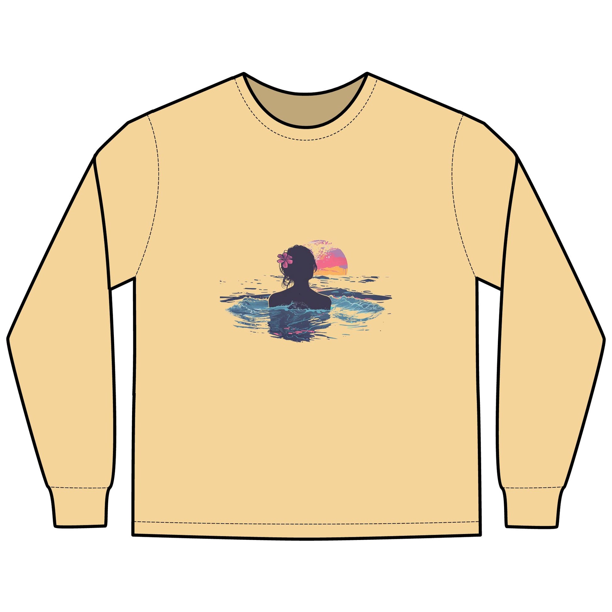 Long Sleeve T-Shirt - Lady in Tide Pool Watching Sunset Ocean Scene