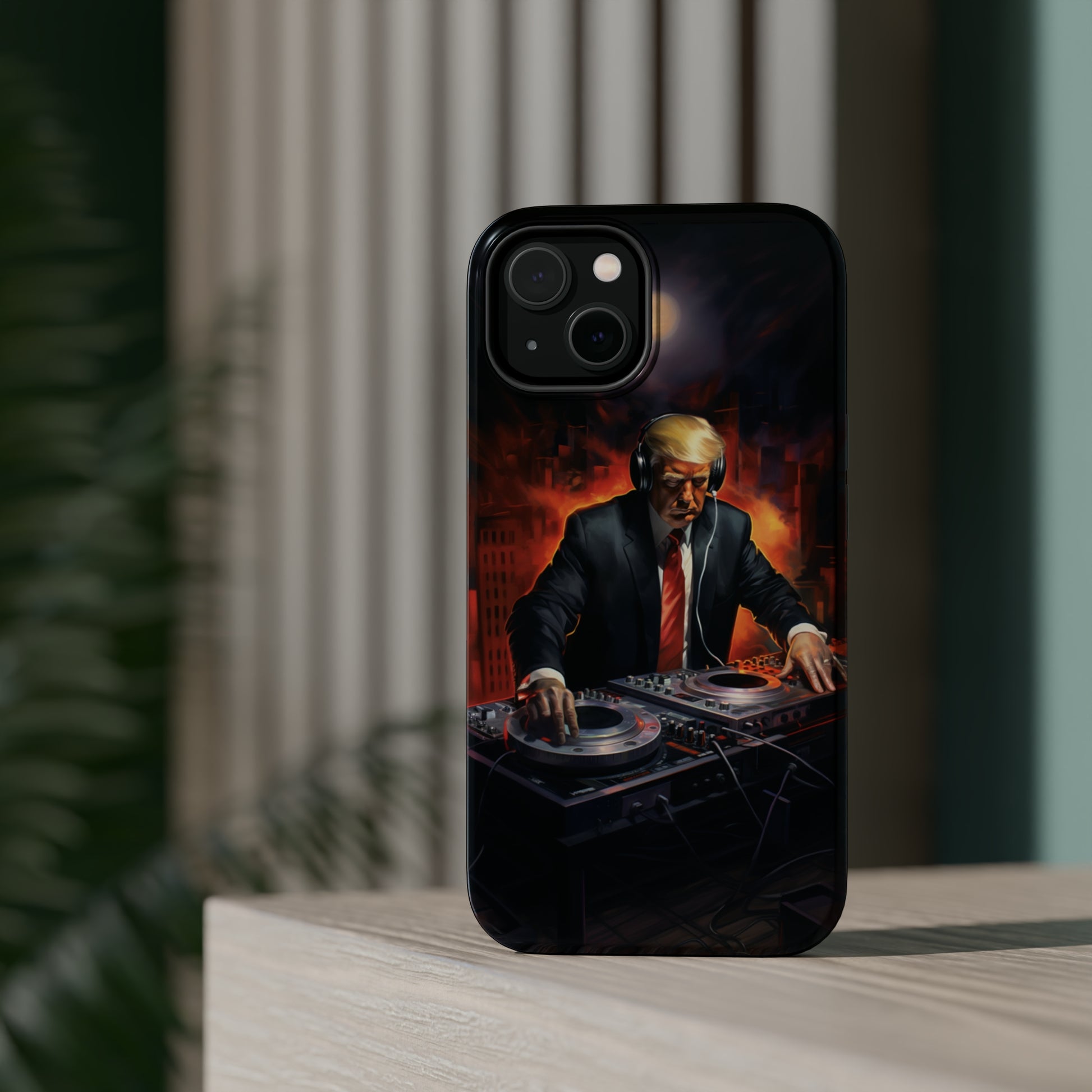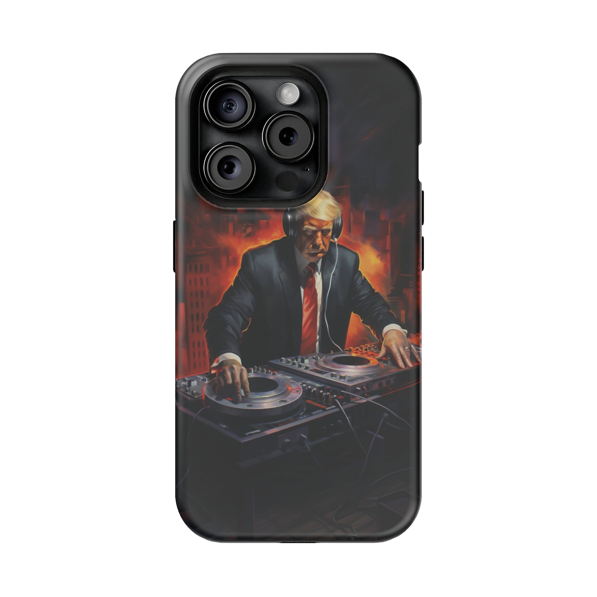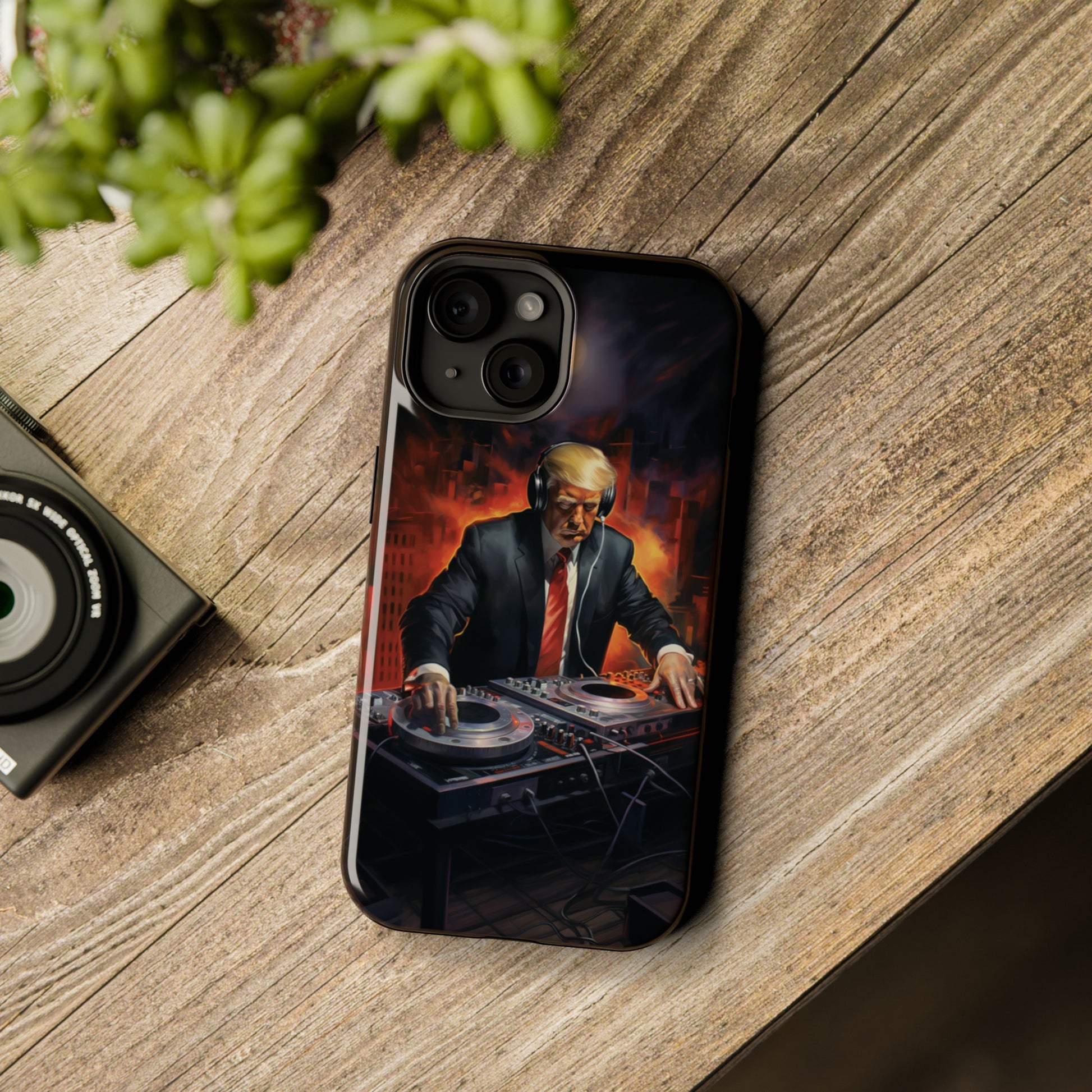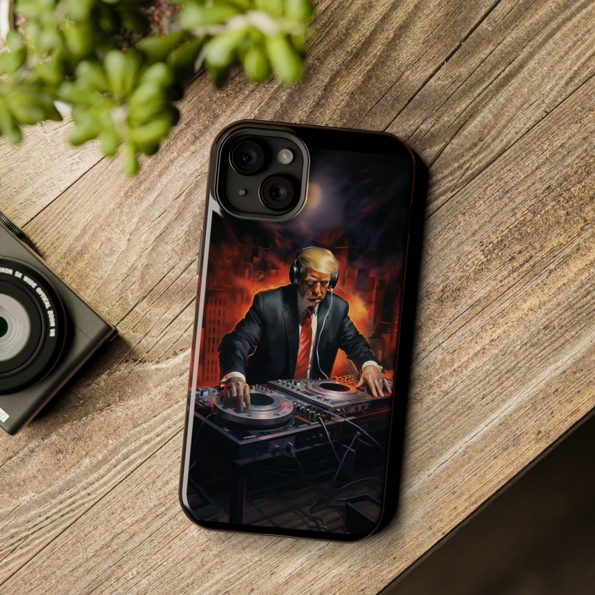 Whether you're a political enthusiast, a nightlife aficionado, or simply someone who appreciates a good laugh, our Trump DJ iPhone 15 case is sure to turn heads and draw smiles wherever you take it. Embrace the unexpected and showcase your unique sense of style with this one-of-a-kind accessory.