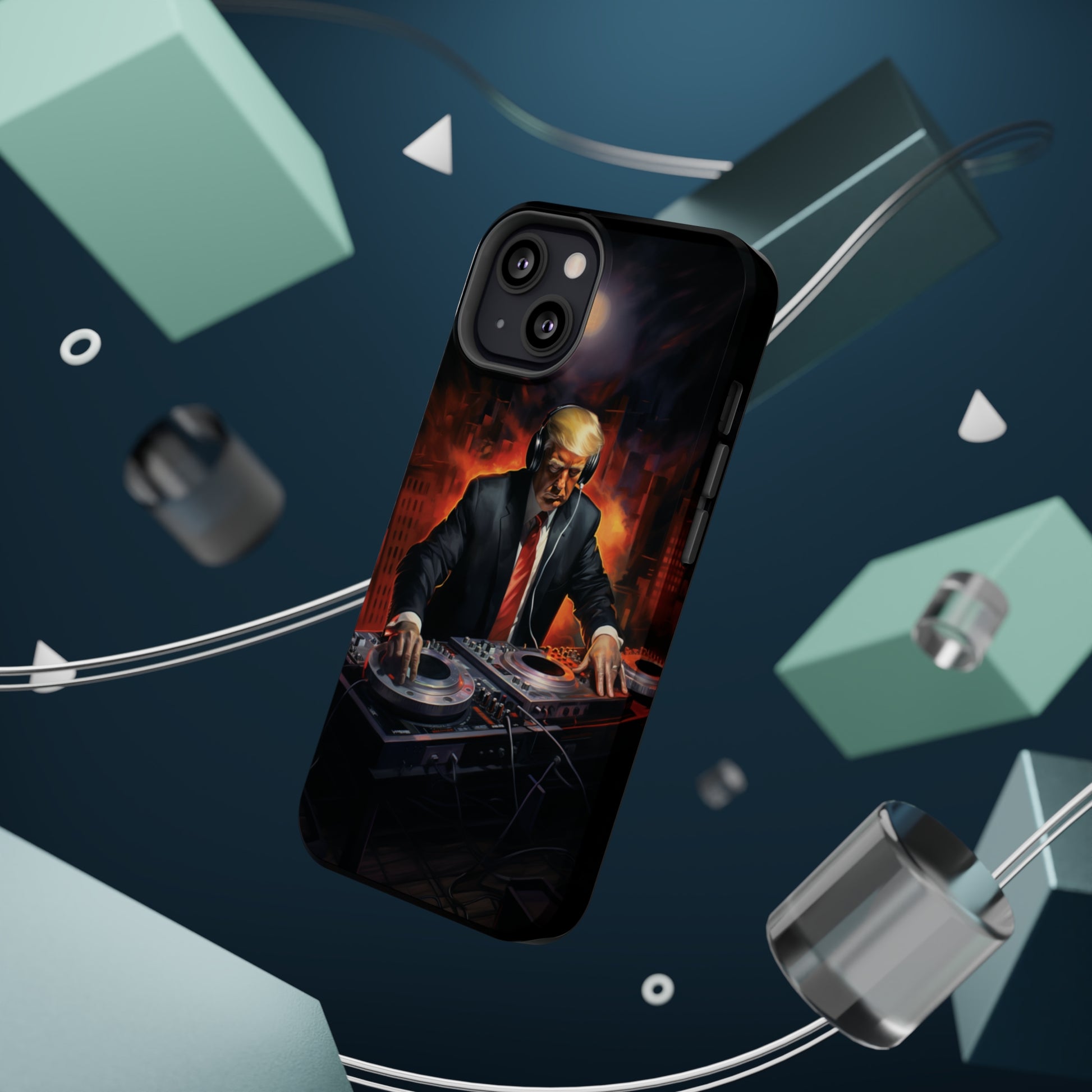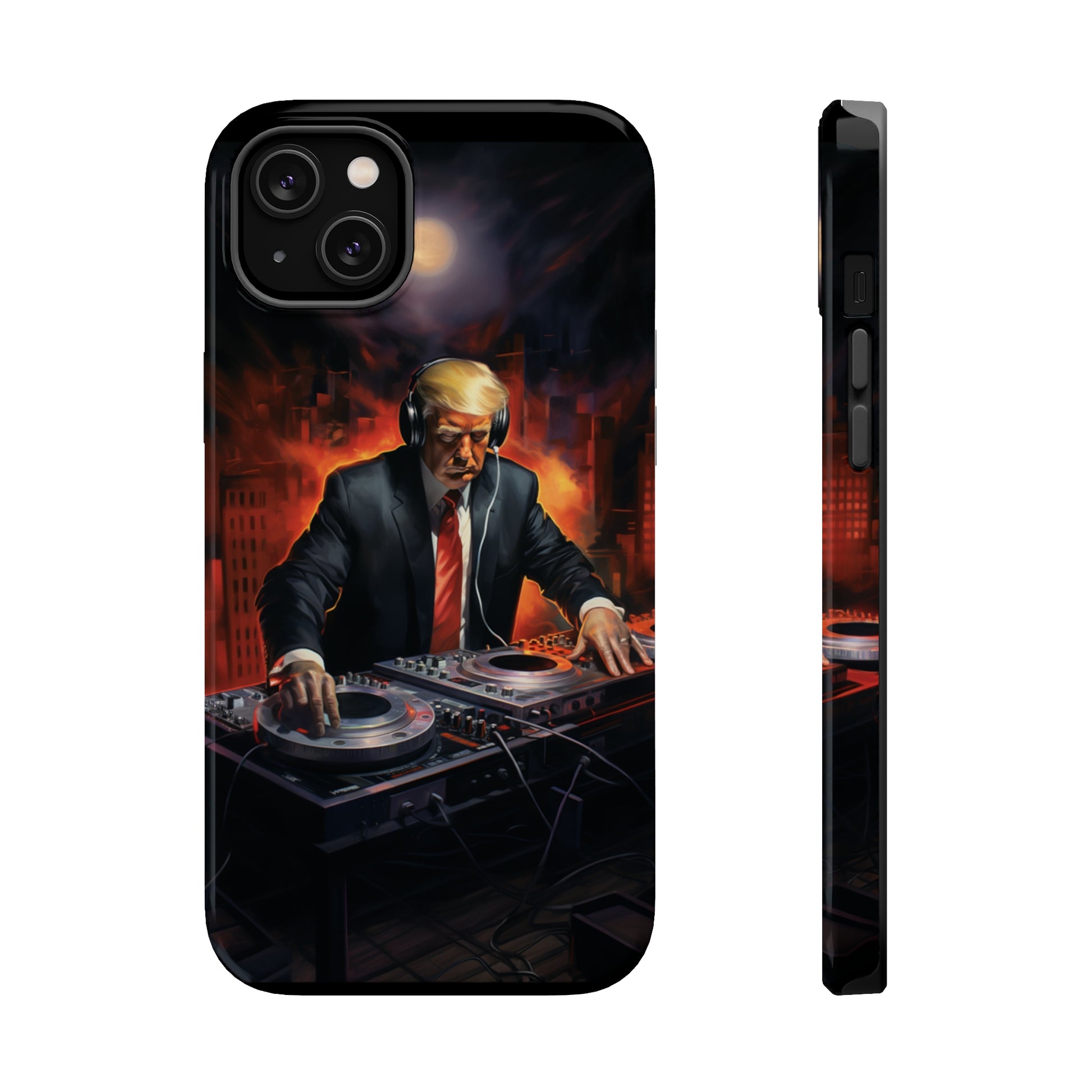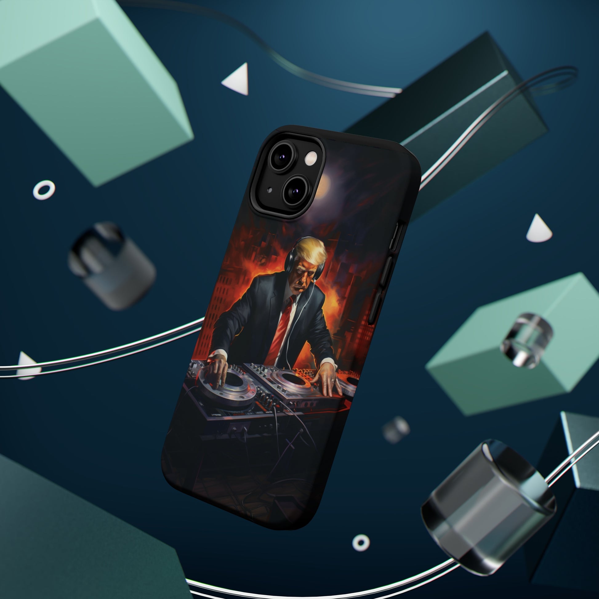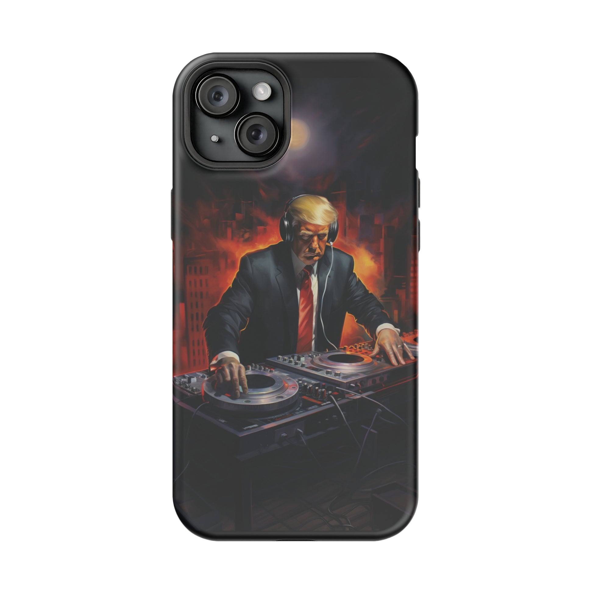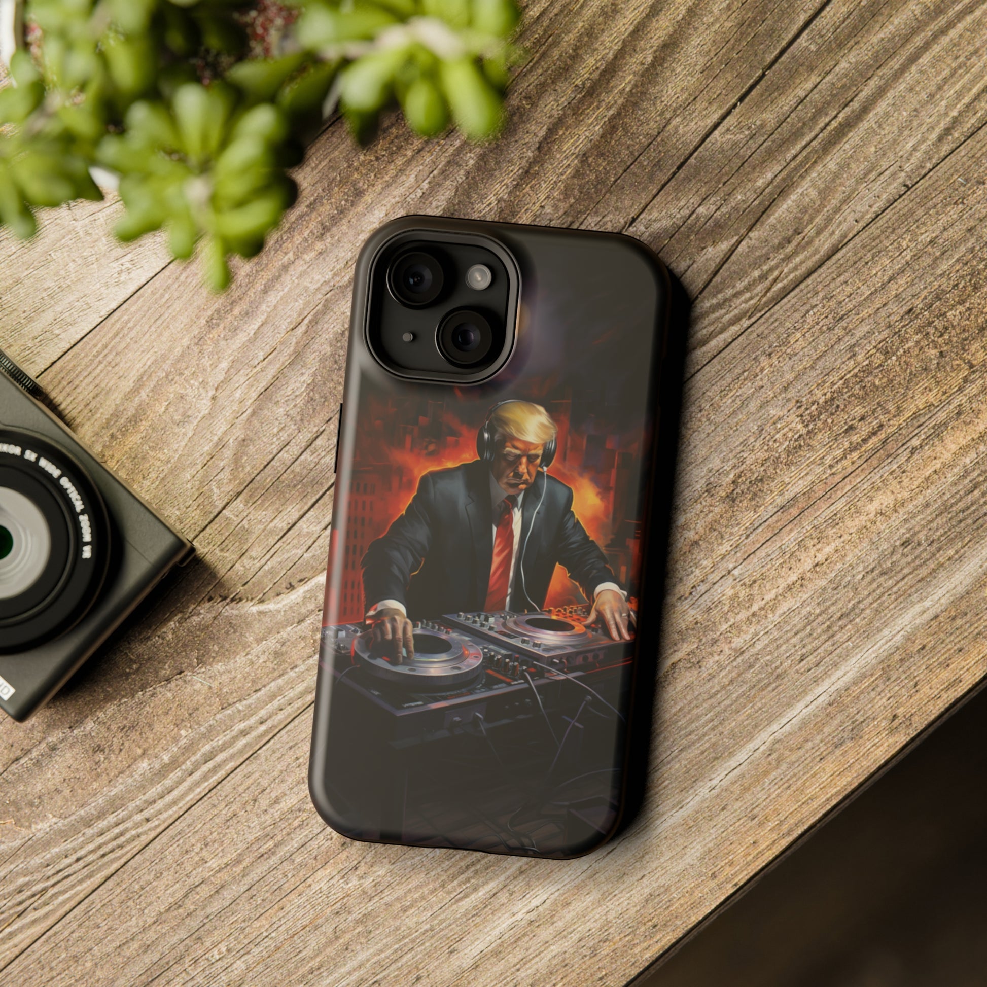 Whether you're a political enthusiast, a nightlife aficionado, or simply someone who appreciates a good laugh, our Trump DJ iPhone 15 case is sure to turn heads and draw smiles wherever you take it. Embrace the unexpected and showcase your unique sense of style with this one-of-a-kind accessory.