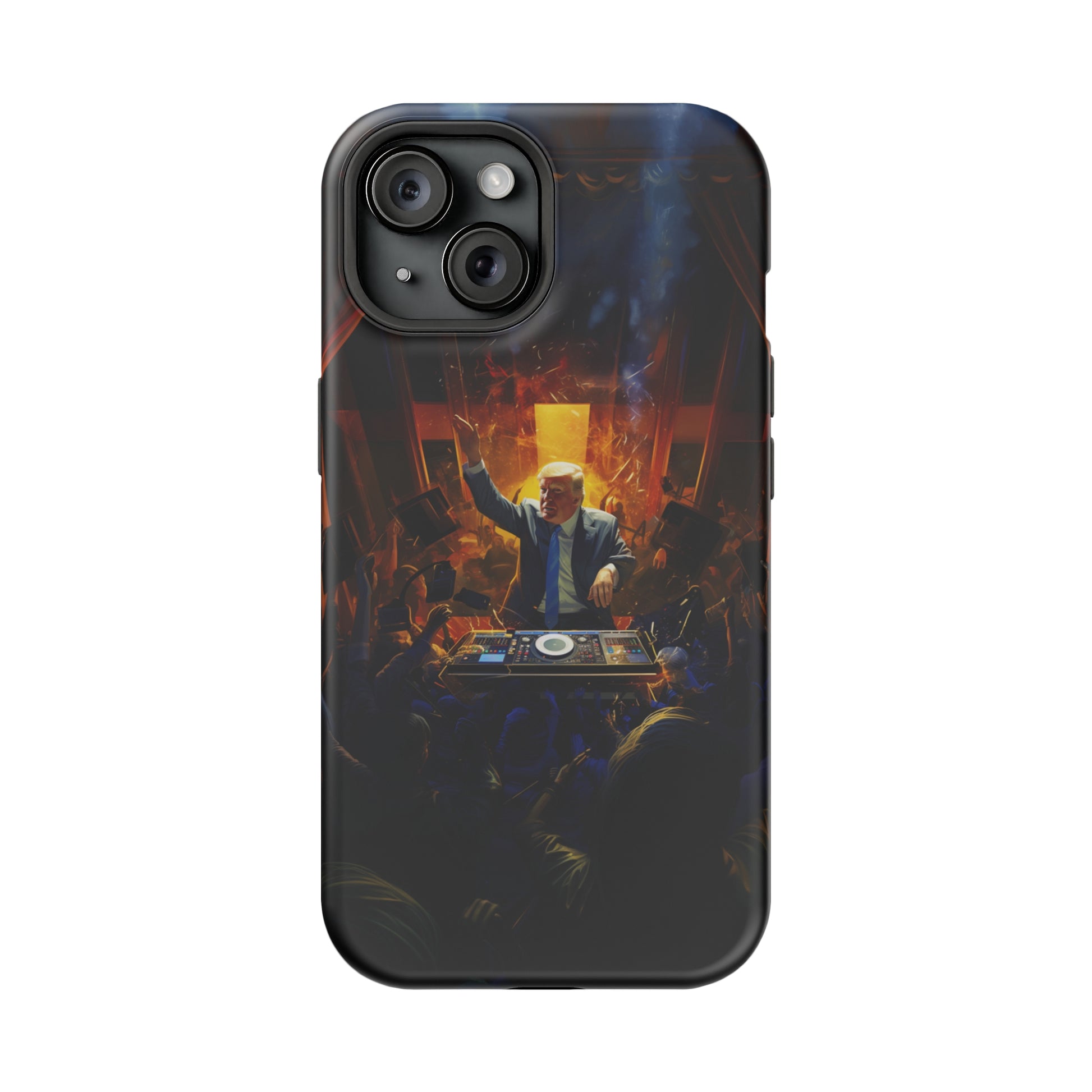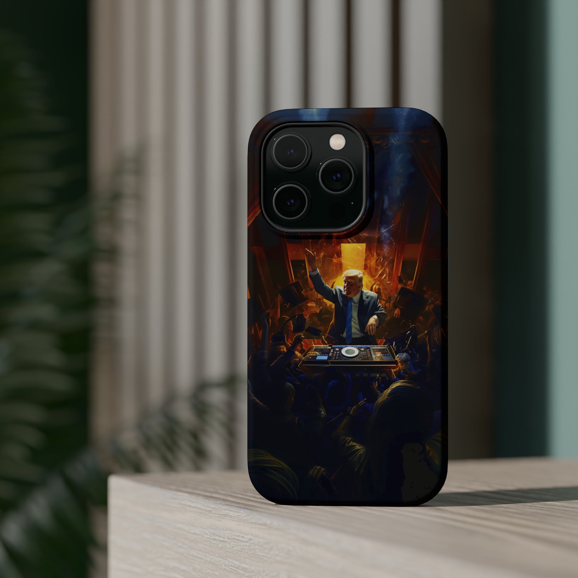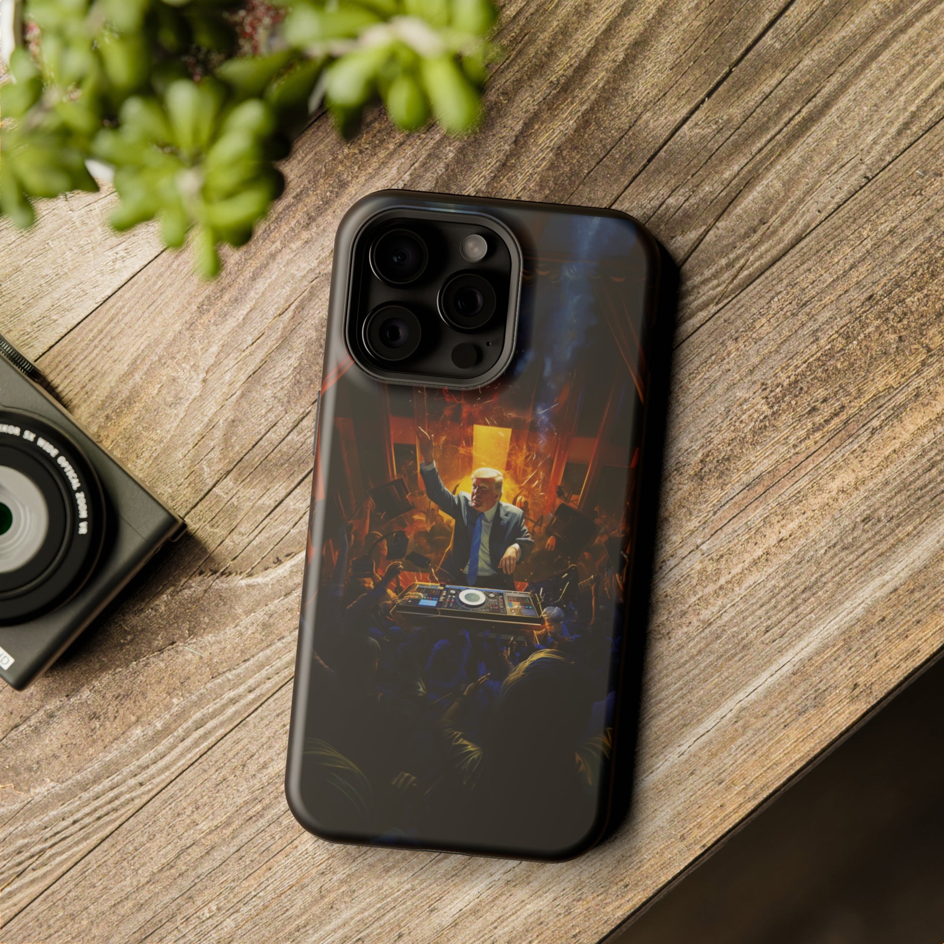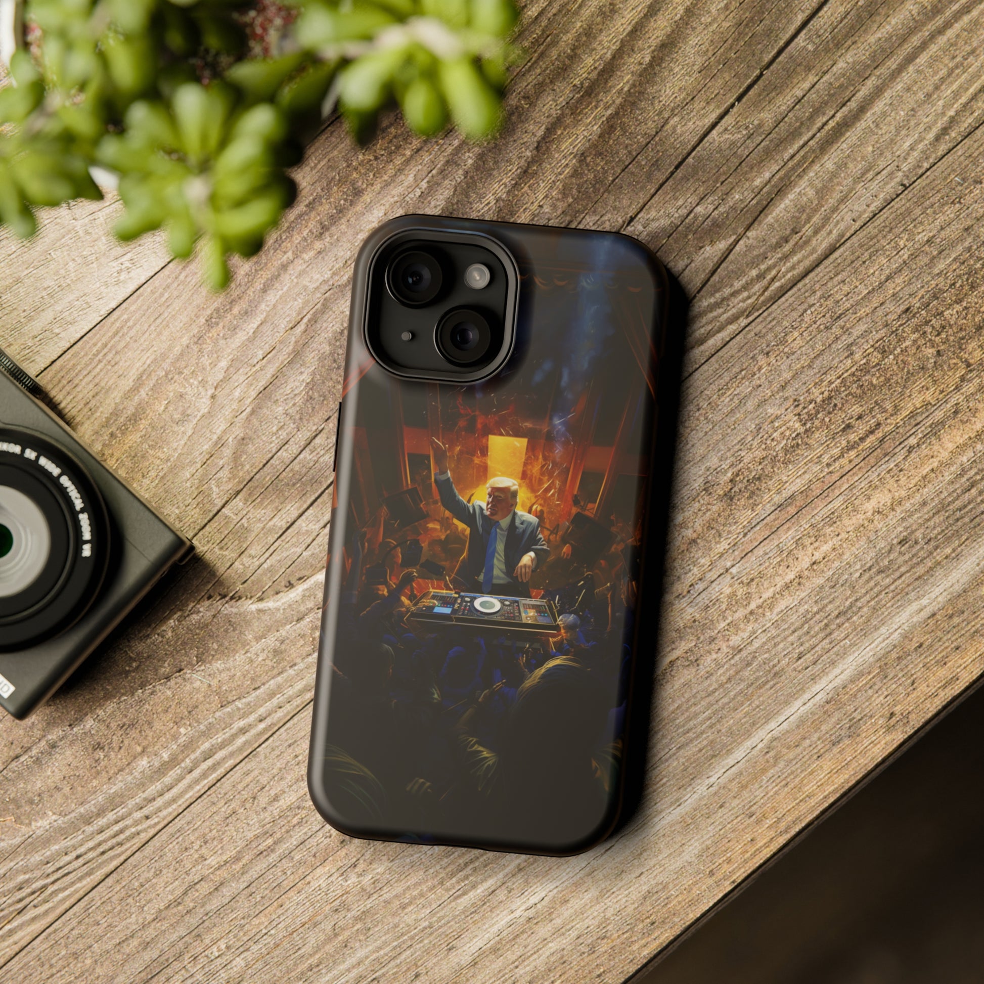Whether you're a political enthusiast, a nightlife aficionado, or simply someone who appreciates a good laugh, our Trump DJ iPhone 15 case is sure to turn heads and draw smiles wherever you take it. Embrace the unexpected and showcase your unique sense of style with this one-of-a-kind accessory.