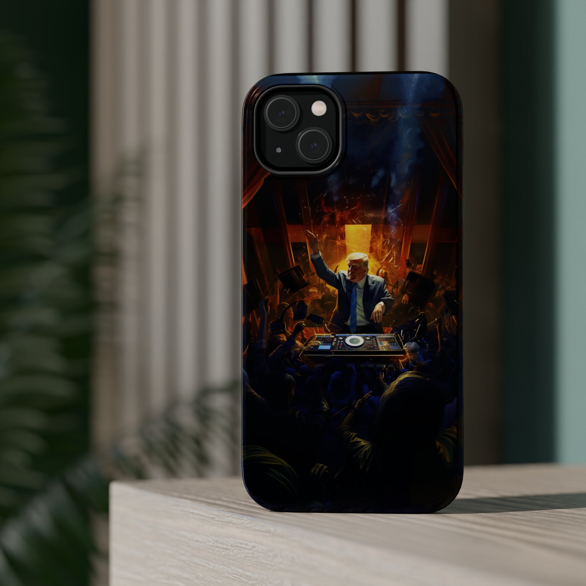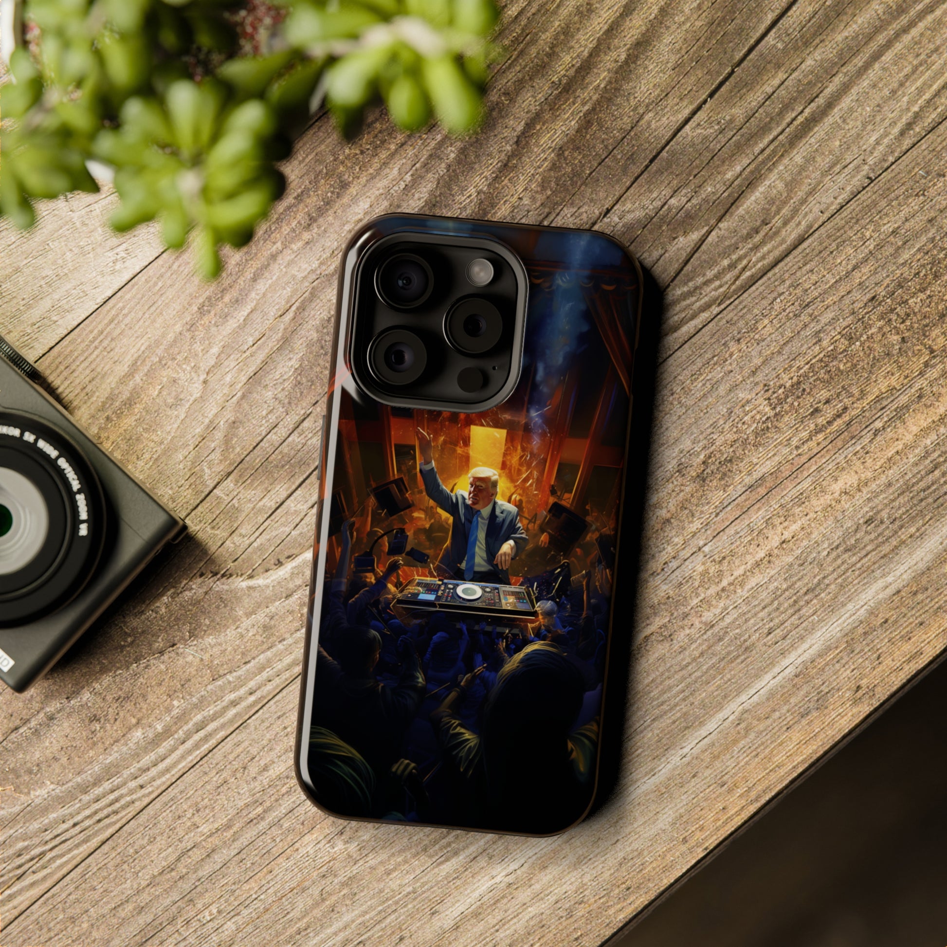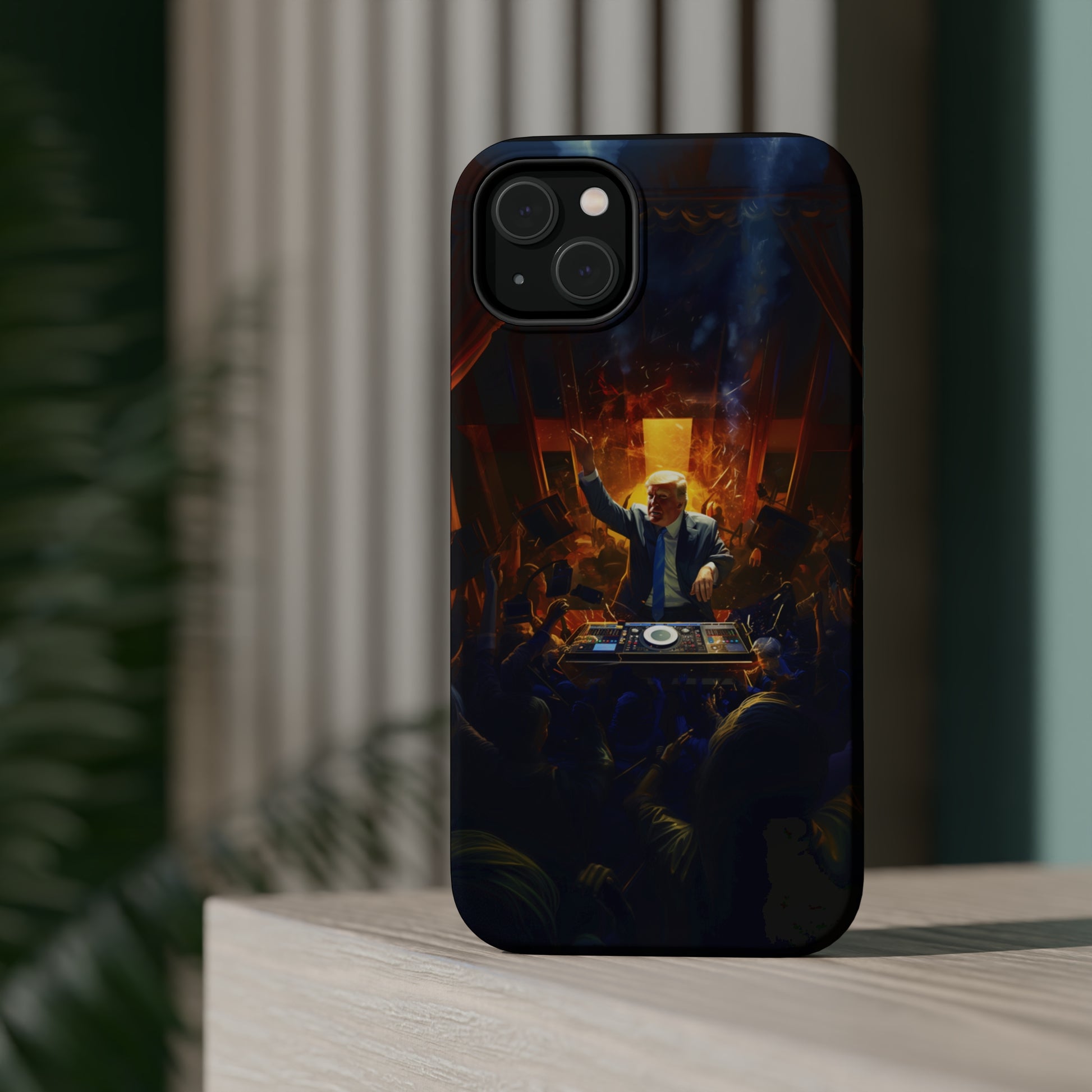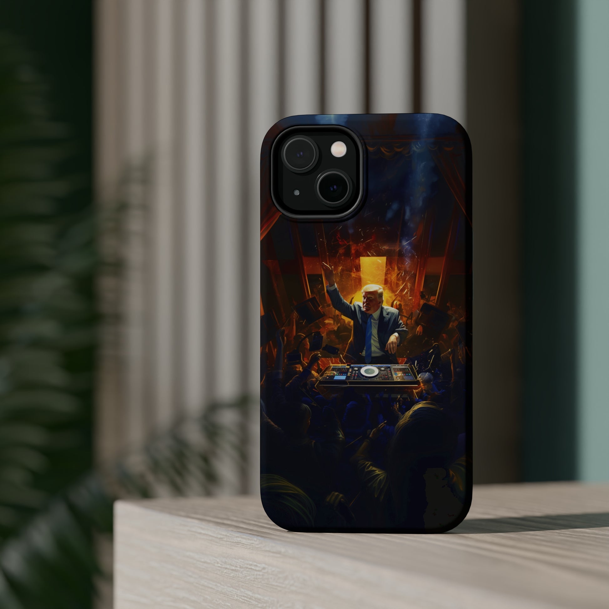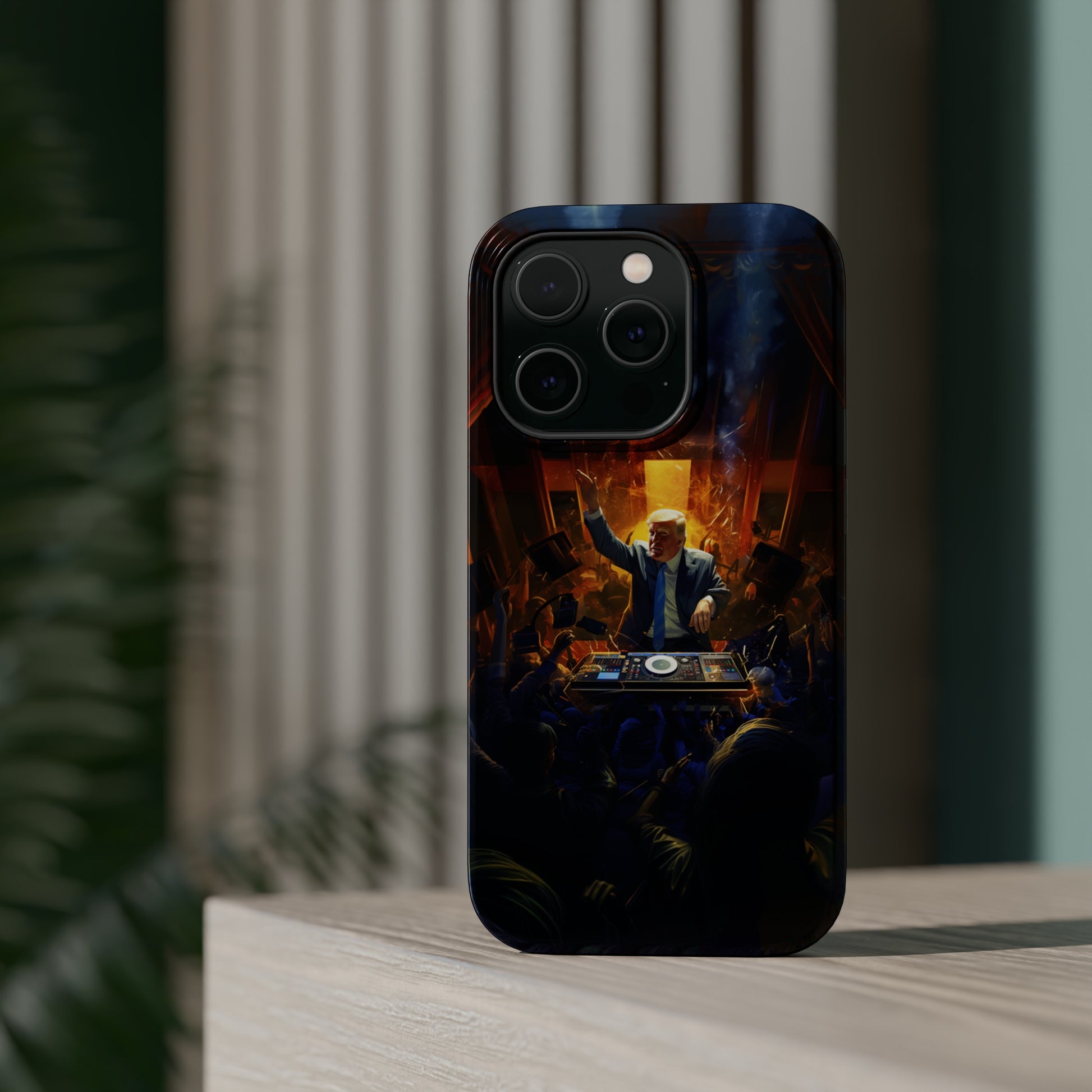 Whether you're a political enthusiast, a nightlife aficionado, or simply someone who appreciates a good laugh, our Trump DJ iPhone 15 case is sure to turn heads and draw smiles wherever you take it. Embrace the unexpected and showcase your unique sense of style with this one-of-a-kind accessory.