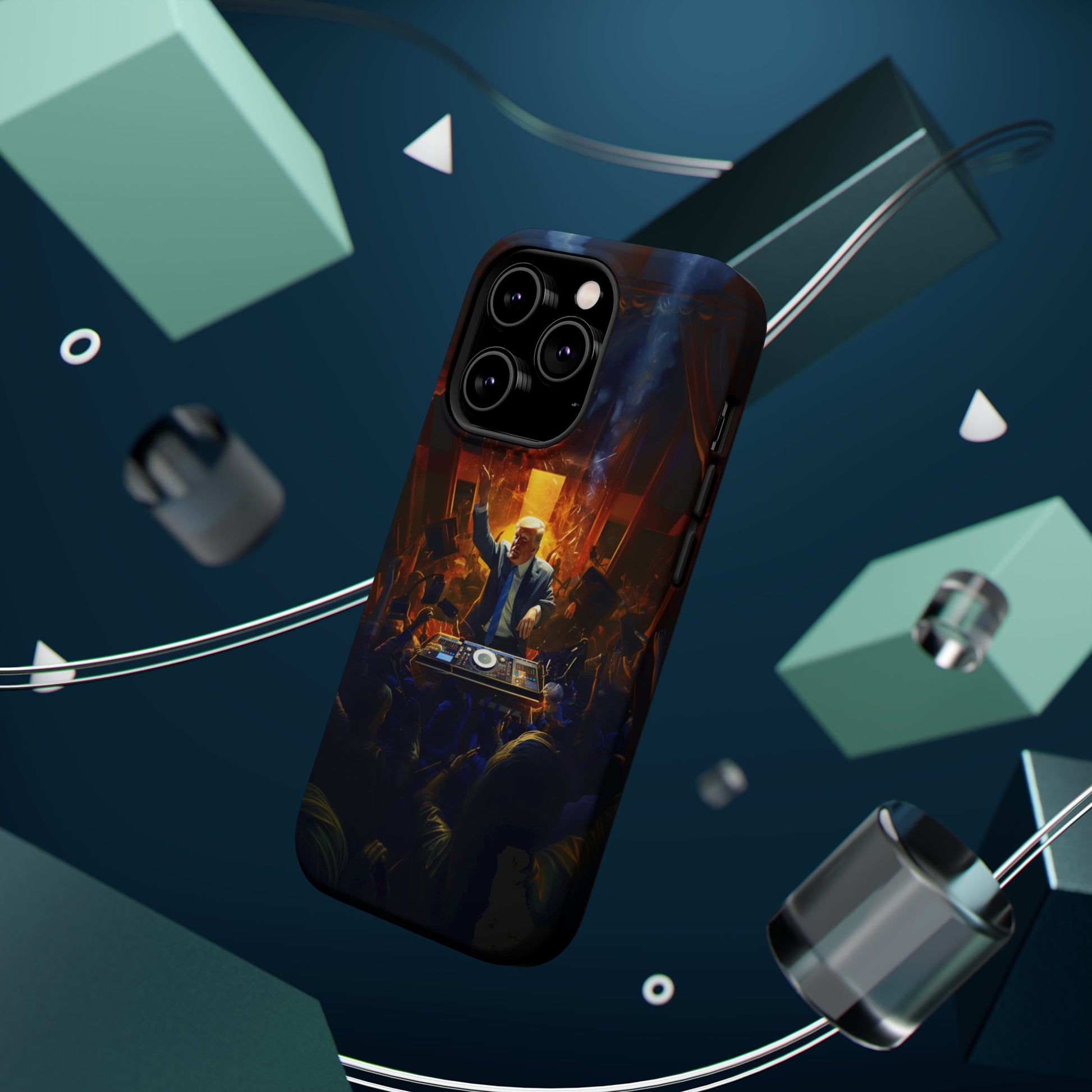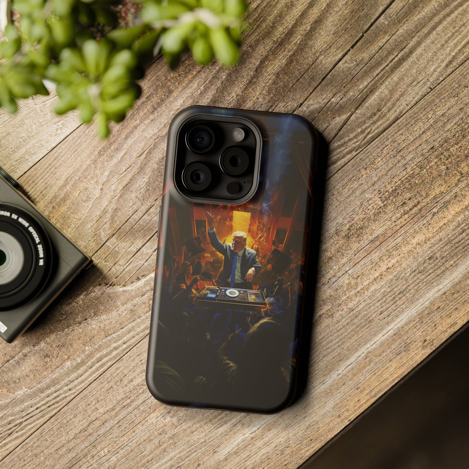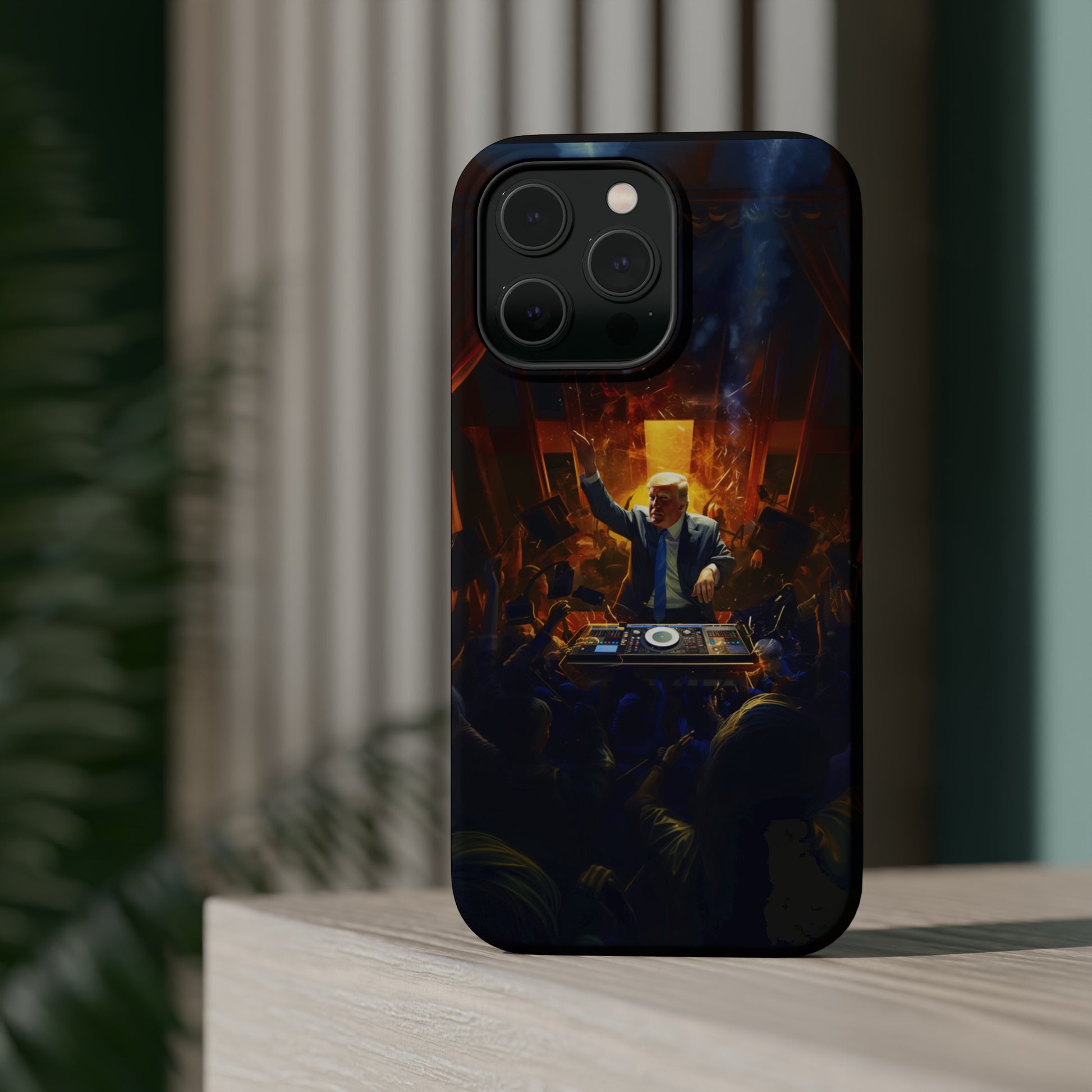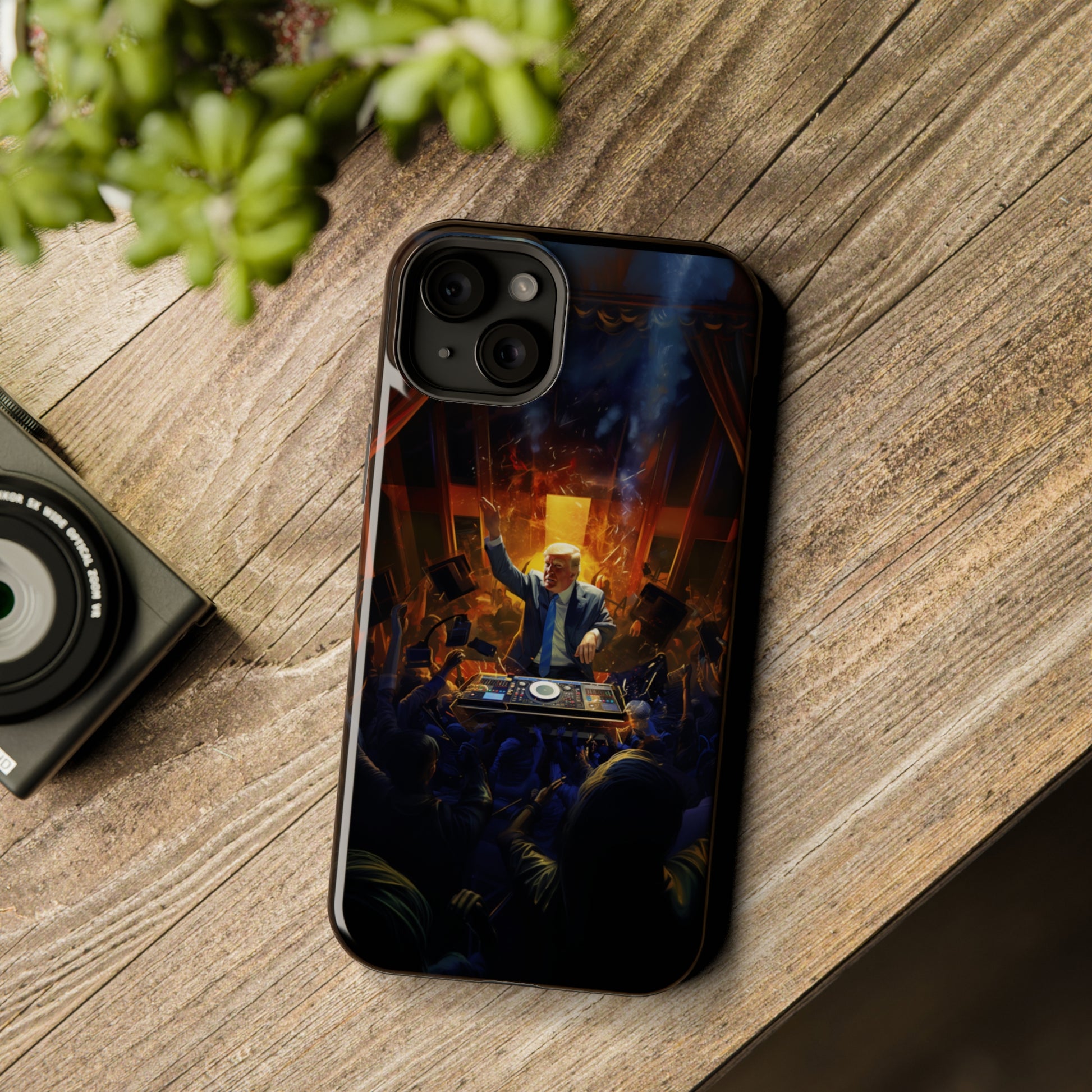Whether you're a political enthusiast, a nightlife aficionado, or simply someone who appreciates a good laugh, our Trump DJ iPhone 15 case is sure to turn heads and draw smiles wherever you take it. Embrace the unexpected and showcase your unique sense of style with this one-of-a-kind accessory.