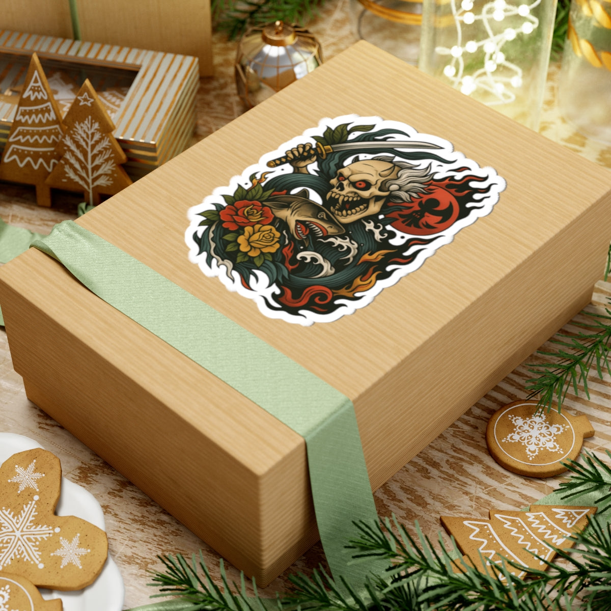 Shark Skull Kiss-Cut Stickers | Summer Vibe, Laptop Decor, USA Pride