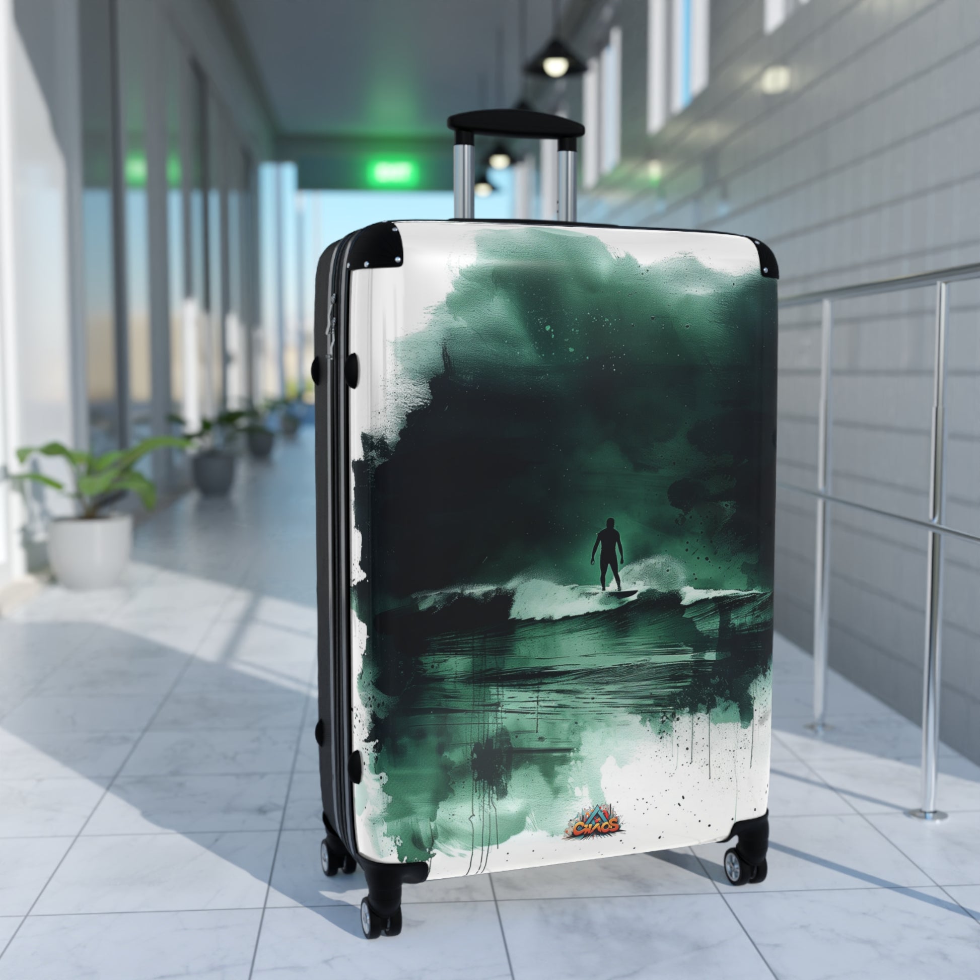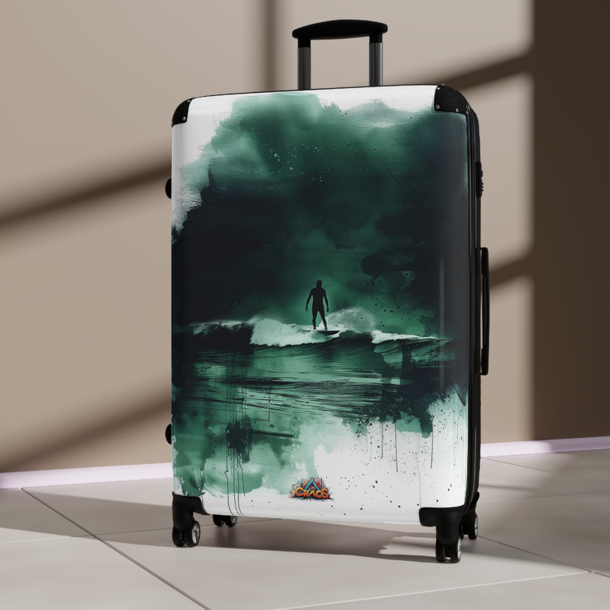 This stylish and unique suitcase features a surfer at night design, perfect for those who love adventurous and independent vibes. It is ideal for travelers looking to stand out from the crowd, especially suitable for beach holidays and summer getaways.