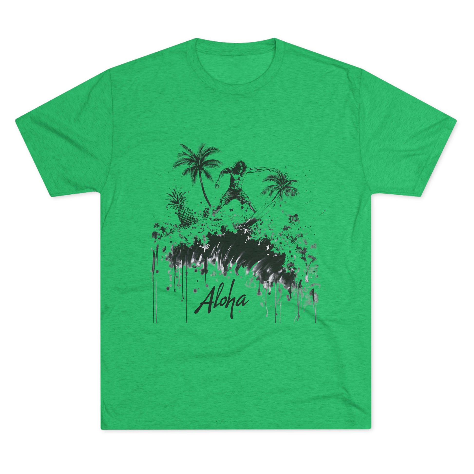 Feel the Aloha spirit with this Unisex Tri-Blend Crew Tee featuring a surfer riding a big wave in edgy art. Perfect for beach lovers and surf enthusiasts, this tee exudes a laid-back vibe and is ideal for casual wear during summer or beach vacations.