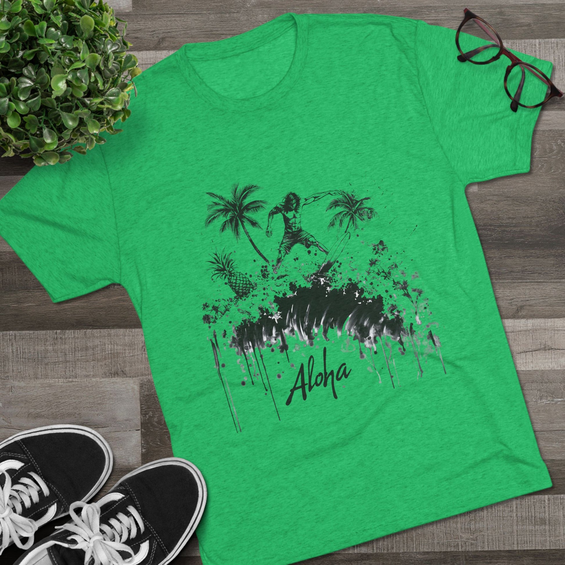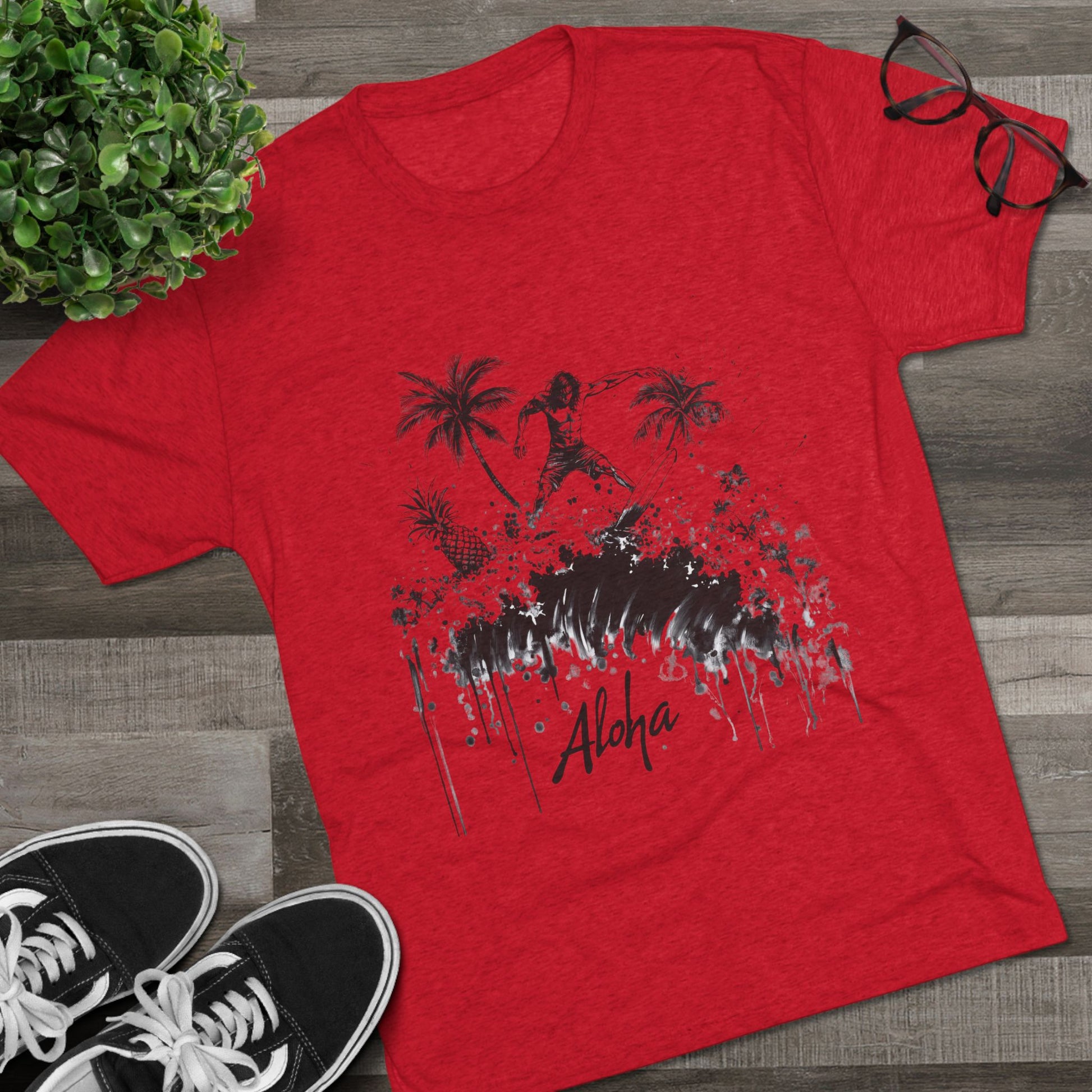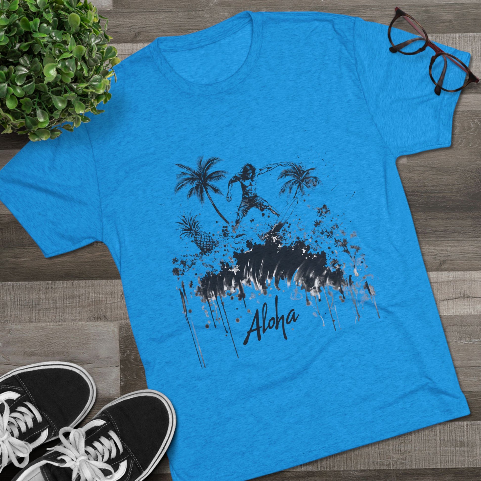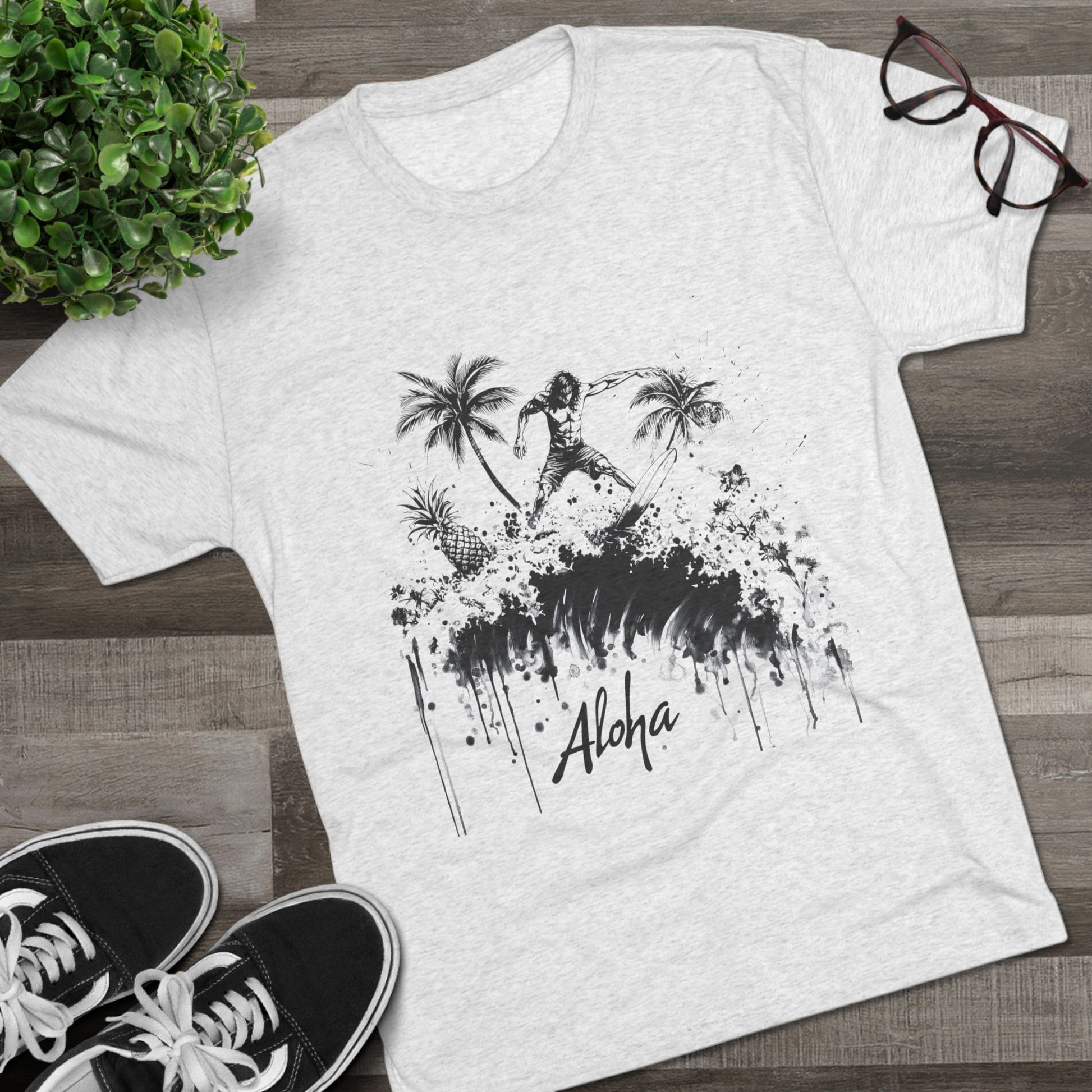 Surfer Tri-Blend Tee - Ride the Wave with Aloha Edgy Art