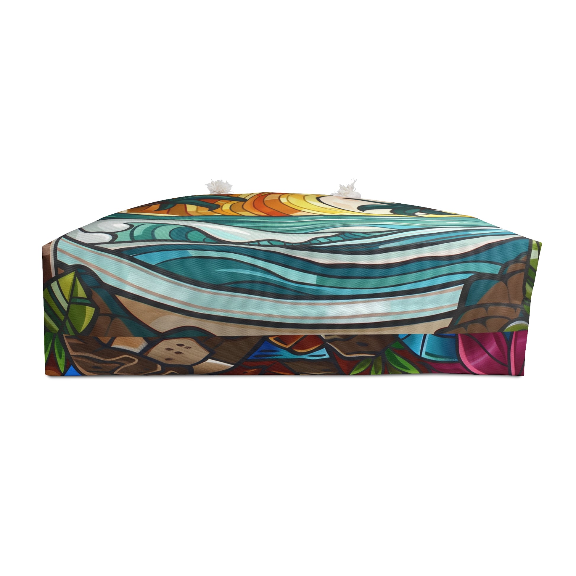 Introducing our Hawaiian Beach Inspired Artwork Weekender Beach Bag, a vibrant and versatile accessory that embodies the spirit of tropical paradise. This spacious beach bag is designed for those who appreciate both style and functionality, making it the perfect companion for your beach adventures, picnics, or weekend getaways.